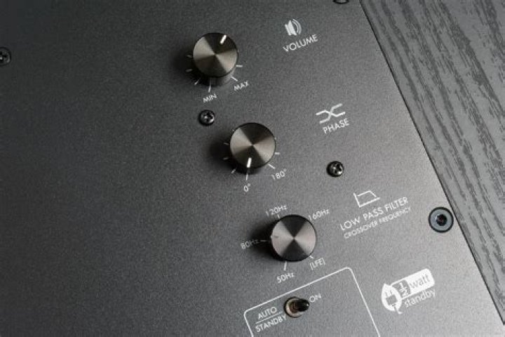 Three high-quality metal knobs provide control for volume, phase and low pass filter. The low pass filter frequency range is 50-160 Hz, and there is also an LFE setting which bypasses the low pass filter entirely, leaving a receiver or integrated amp’s bass management settings to do the work .